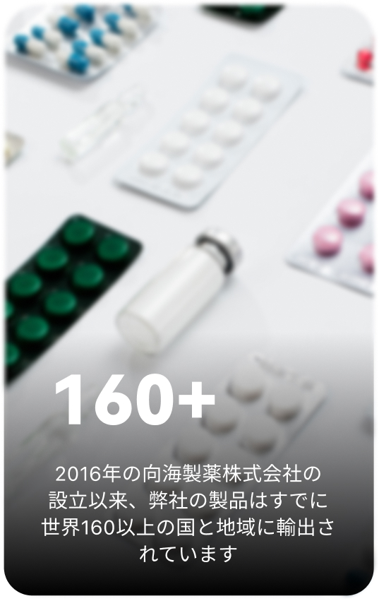 海製薬株式会社は2016年、東京に設立されました。過去8年間にわたり日本製品の輸出事業に従事し、輸出入に精通した専門チームのもと、薬用化粧品・日用品・食品・電化製品など多様な日本製品を海外へ提供してまいりました。